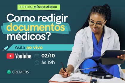 Integrando as ações preparadas pelo Conselho para o Mês do Médico, o Cremers transmite, nesta quinta-feira (02), às 19h, aula on-line gratuita sobre boas práticas e normas atualizadas para preenchimento de documentos médicos.