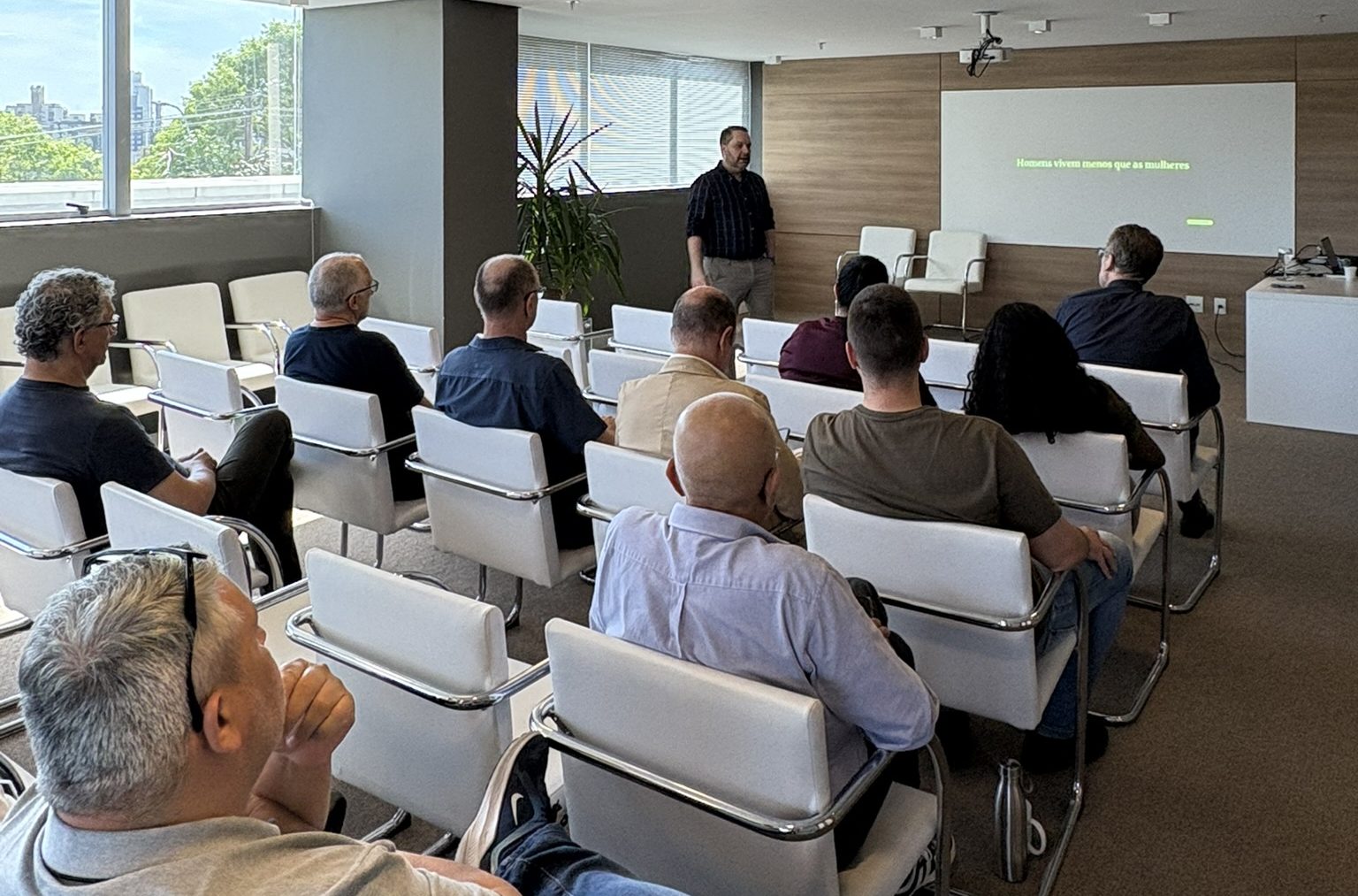 Durante a apresentação, Batezini mostrou dados que evidenciam a menor expectativa de vida dos homens em relação às mulheres e relacionou o indicador a fatores culturais associados à masculinidade. “Buscar ajuda não é fraqueza. Os homens também são vulneráveis e sofrem de doenças físicas e mentais”, afirmou.