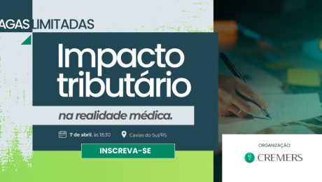 O Cremers promove a palestra “Impacto tributário na realidade médica” na próxima terça-feira (7), às 18h30, na Delegacia Seccional de Caxias do Sul. O encontro, voltado para médicos, sócios de clínicas e hospitais e gestores de empresas médicas, tem como objetivo esclarecer as recentes alterações nas regras tributárias e como elas afetarão o dia a